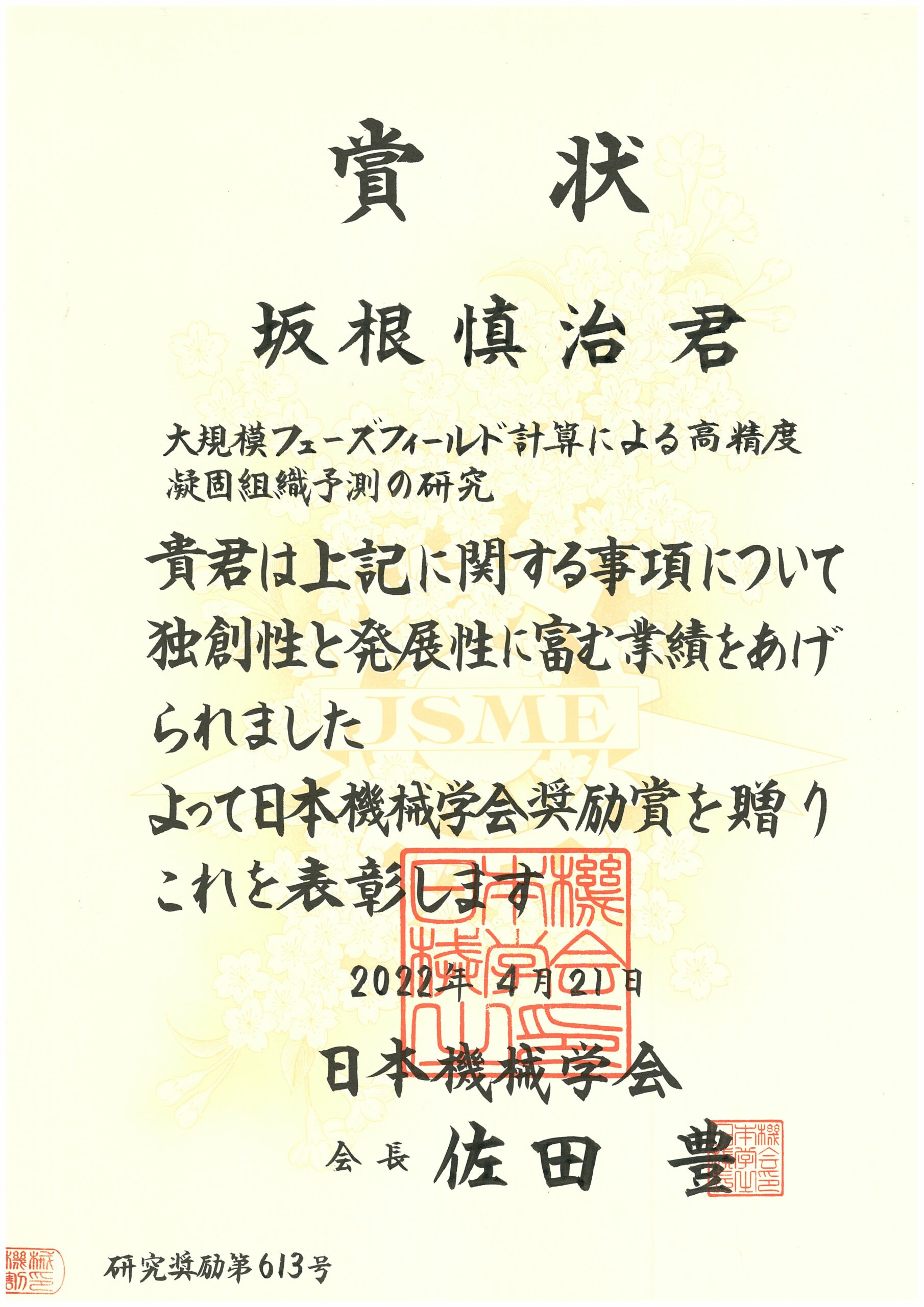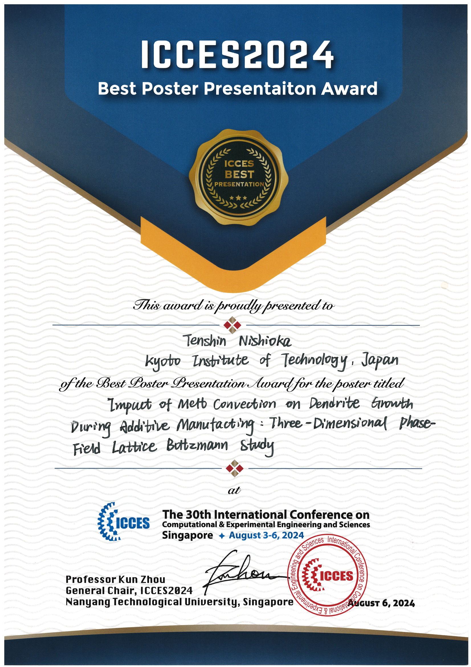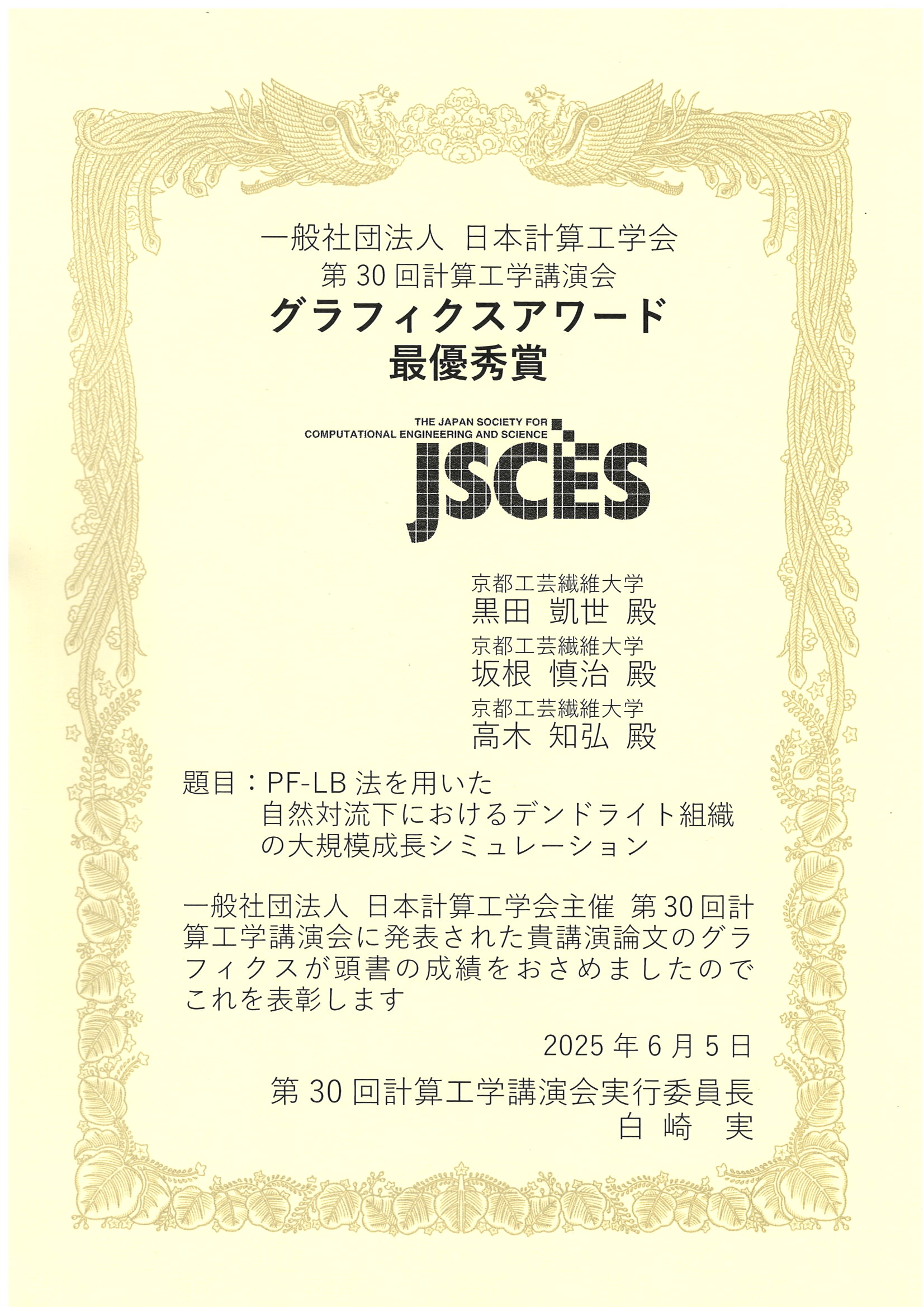 2015年6月24日 S. Sakane, T. Takaki, M. Ohno, T. Shimokawabe, T. Aoki [賞状]