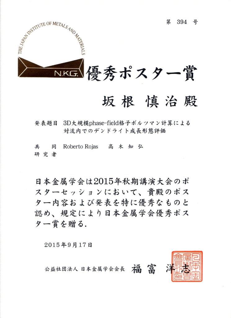 日本金属学会2015年秋期講演大会優秀ポスター賞