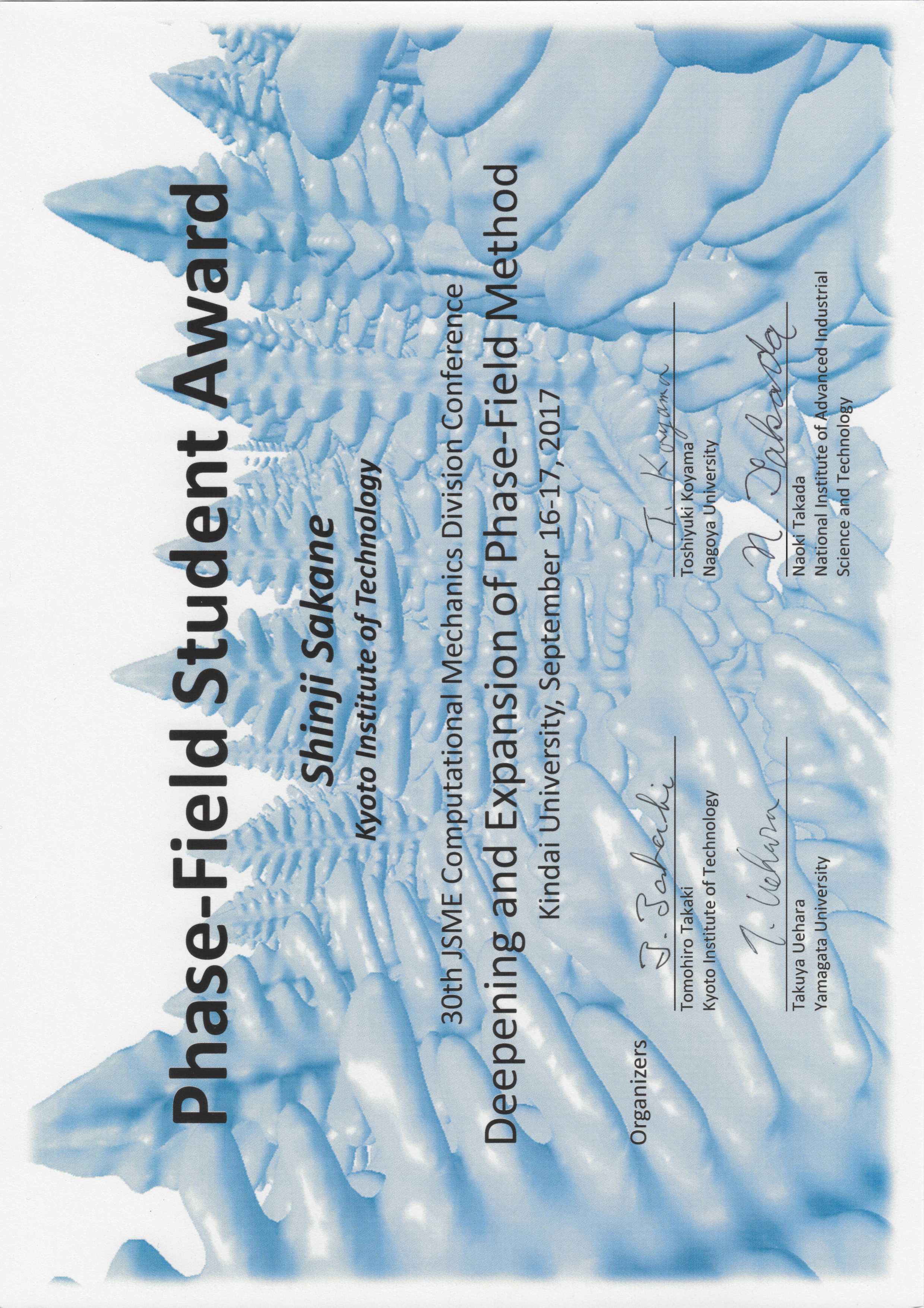 2017年8月24日, S. Sakane, T, Takaki, M. Ohno, Y. Shibuta, T. Shimokawabe, T. Aoki [賞状]